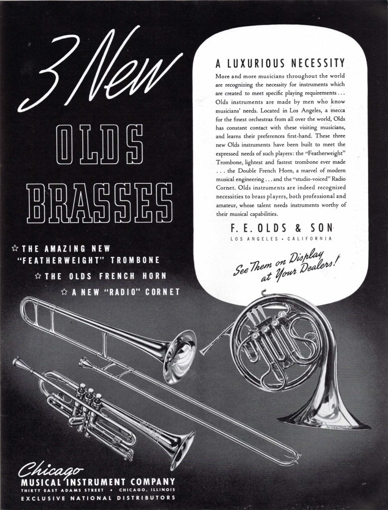 An ad in the October 1939 issue of Metronome promoting 3 new models: the Featherweight trombone, the French horn and the Radio cornet!