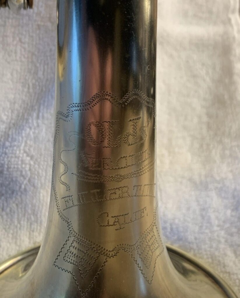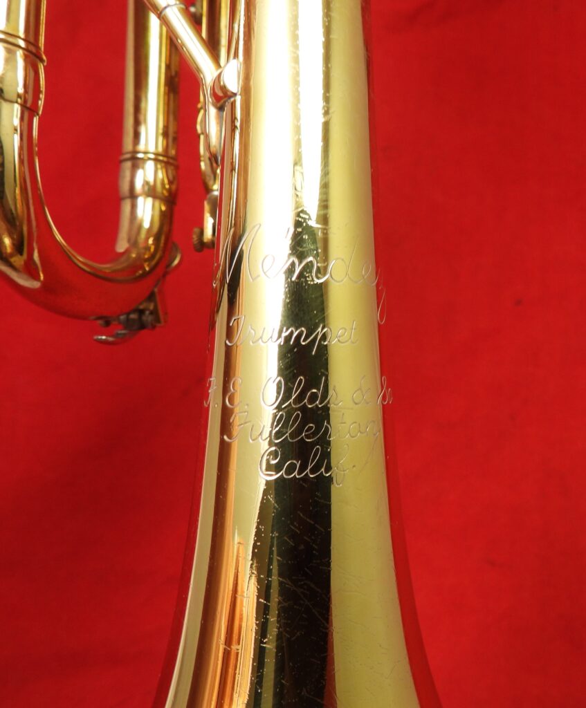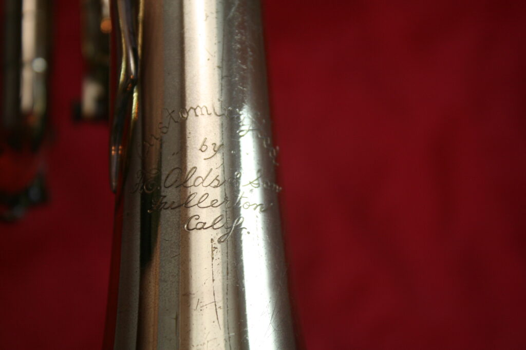 Olds generally made both a trumpet and cornet version of each model. The model name is engraved somewhere on the bell along with “F.E. Olds & Son Fullerton Calif.”