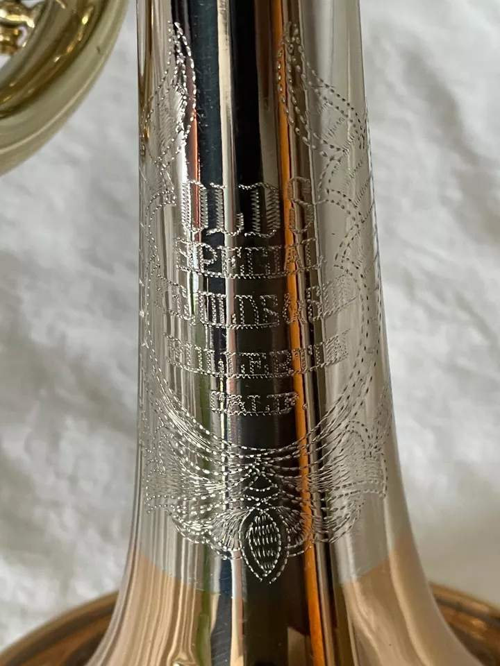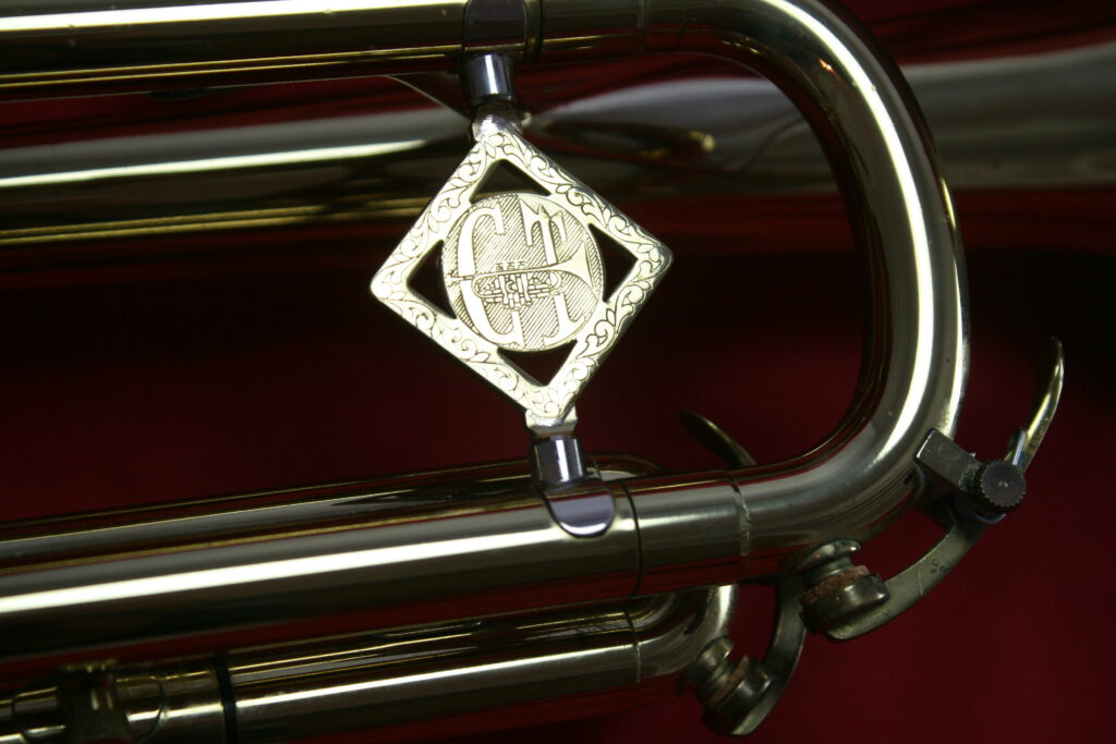 The Clark Terry trumpet and flugelhorn were made for only two or three years at the end of Olds Fullerton production. One of the iconic features of this model is the large CT Medallion