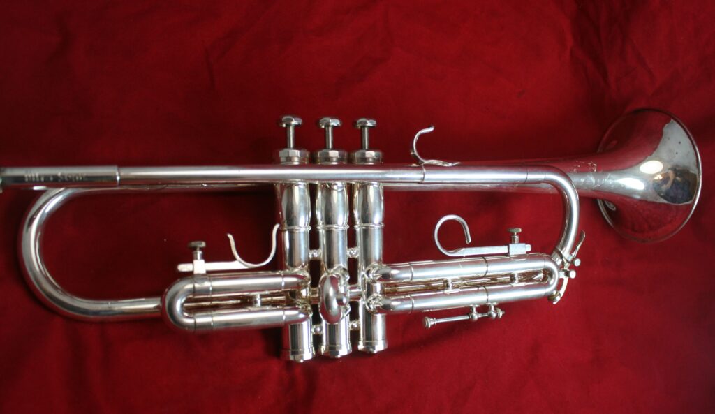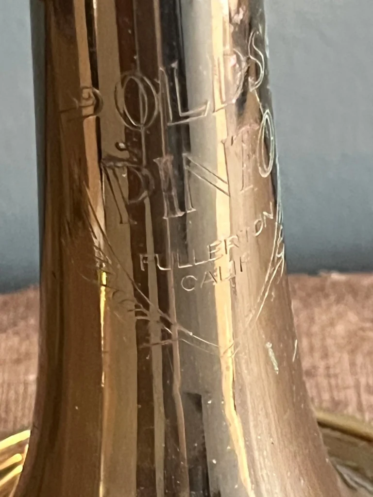 For much of the Fullerton production, the Studio models were lacquered brass instruments with a distinctive Nickel-Silver bell flare.